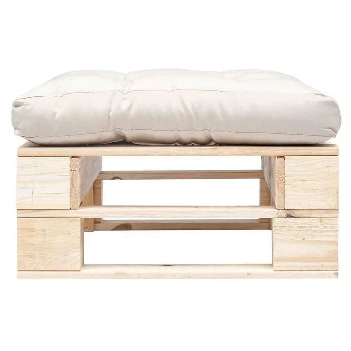 Repose-pied Palette De Jardin Avec Coussin Beige Bois De Pin